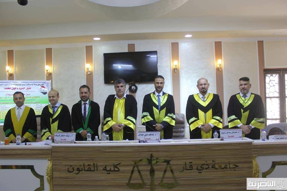 منحت كلية القانون بجامعة ذي قار اليوم شهادة الدكتوراه في فلسفة القانون لأول طالب دراسات عليا في الكلية .